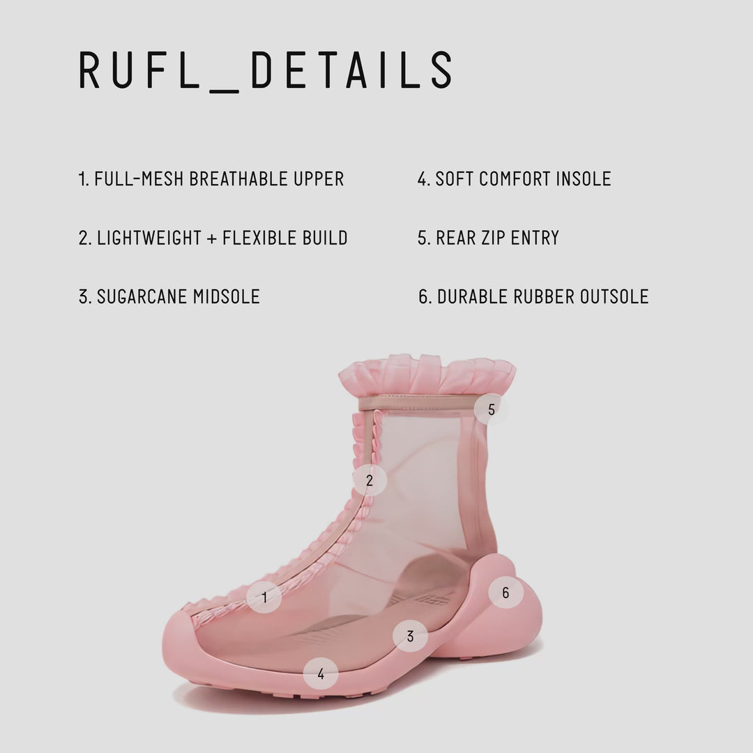 The RUFL boot, which debuted during Collina Strada's New York Fashion Week show, is described as one-of-a-kind, combining disruptive design and eco-friendly materials.